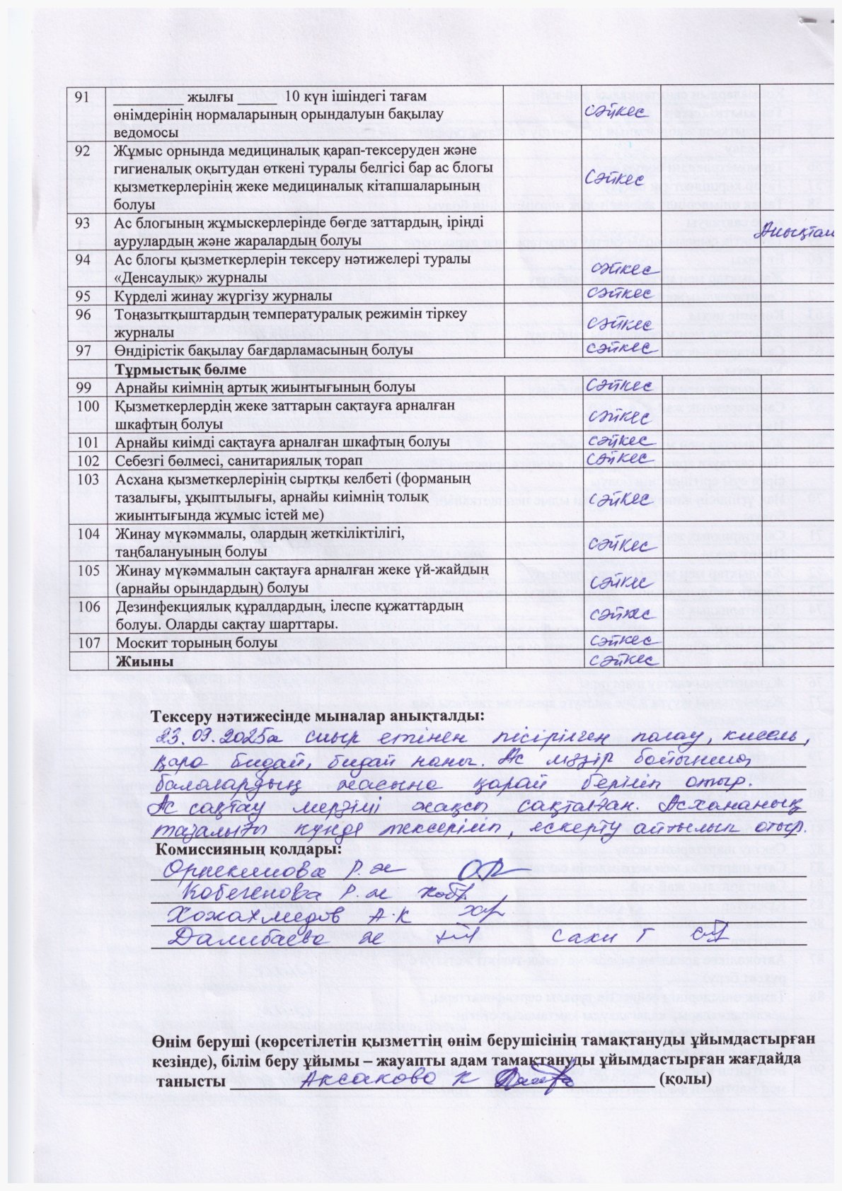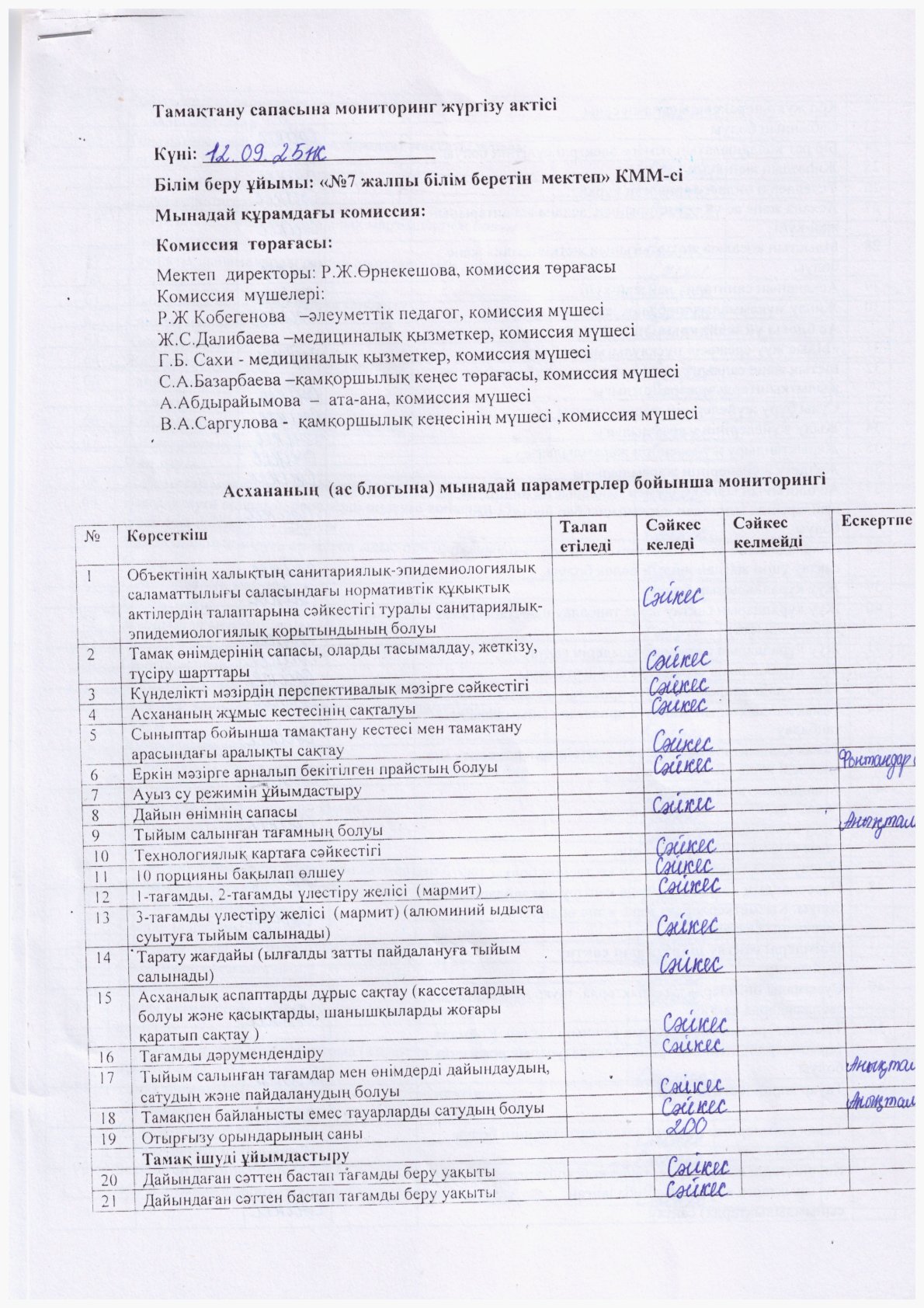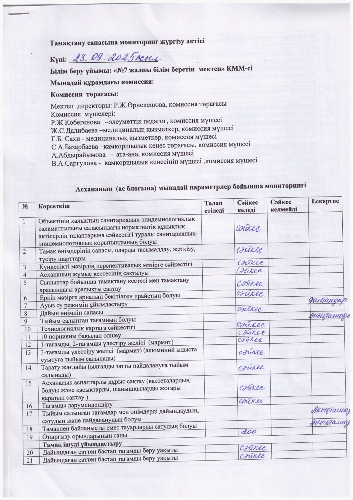 Тамақтану сапасына мониторинг жүргізу актісі (09.09.2024 ж.)