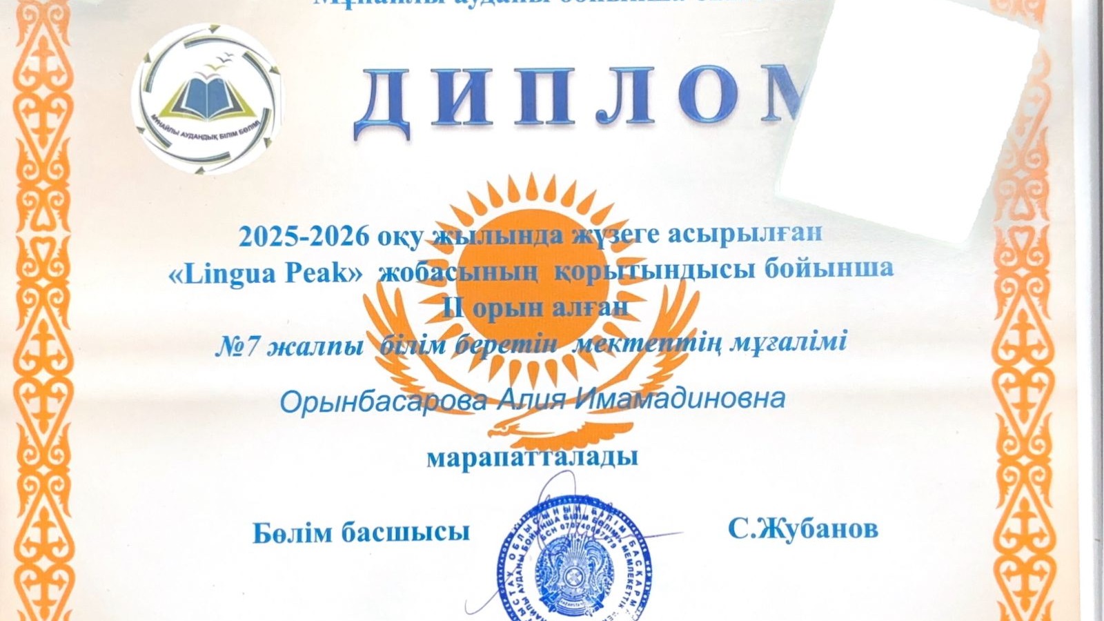 2025–2026 оқу жылында ұйымдастырылған «Lingua Peak» жобасының қорытындысы бойынша